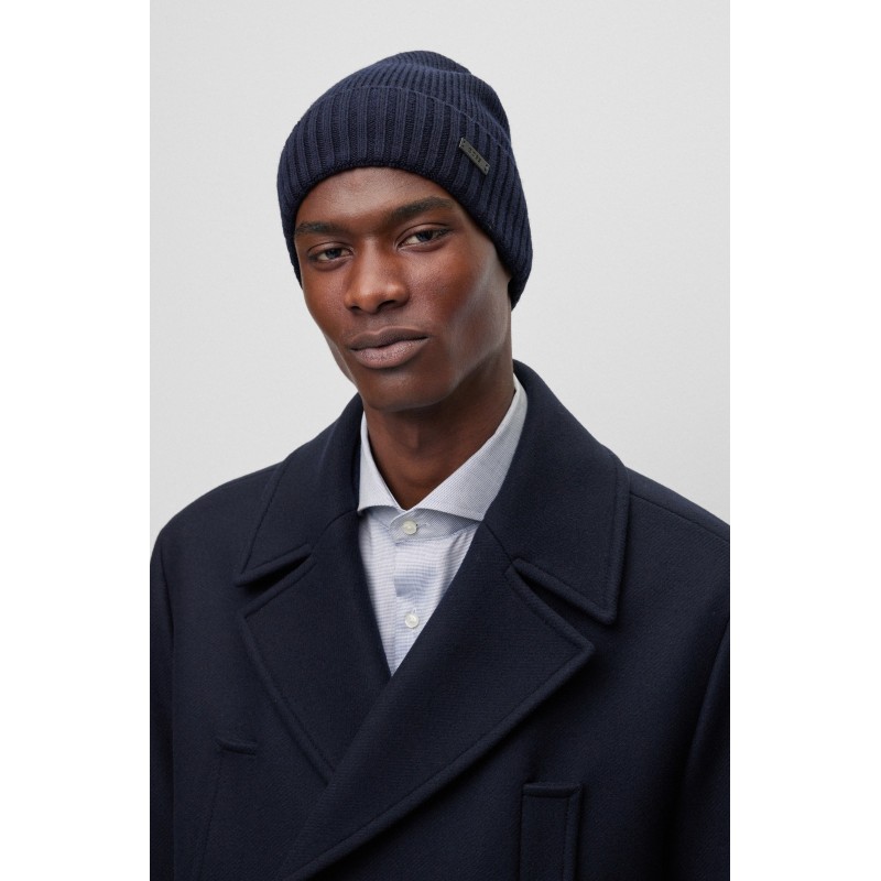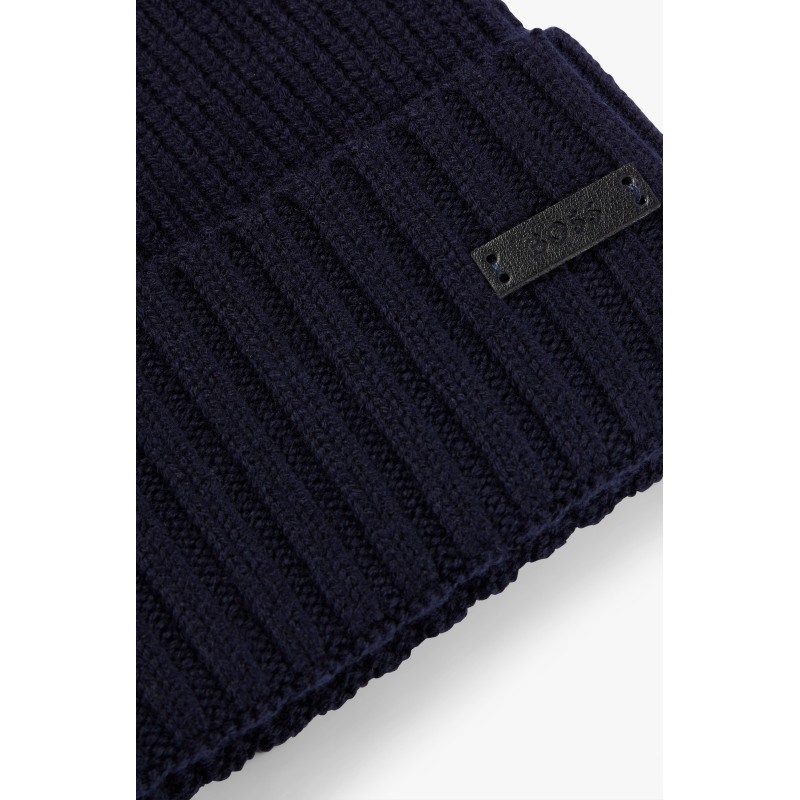 Bonnet en laine vierge avec patch HUGO BOSS