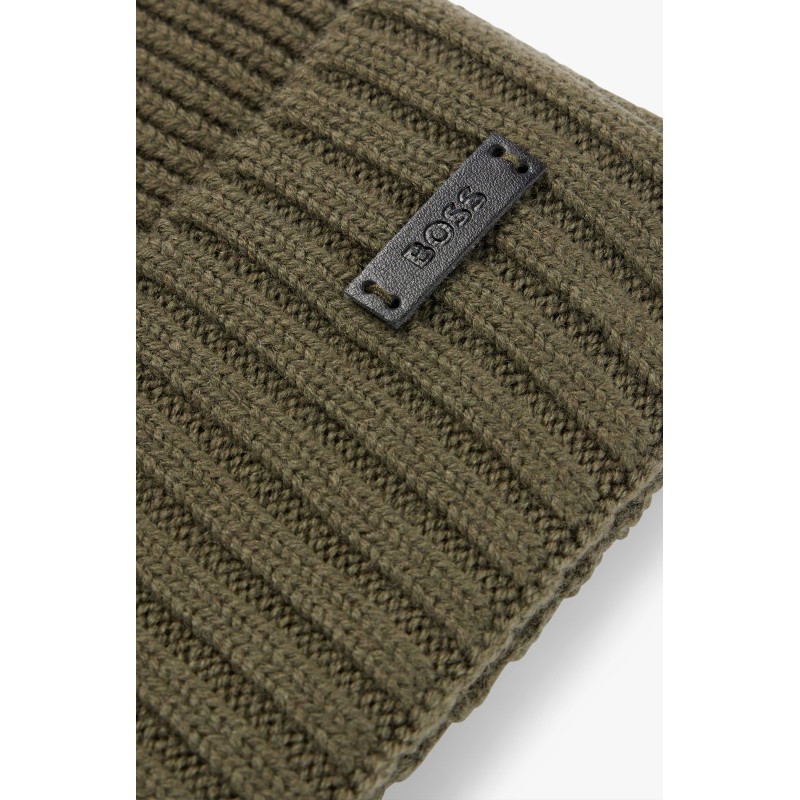 Bonnet en laine vierge avec patch HUGO BOSS