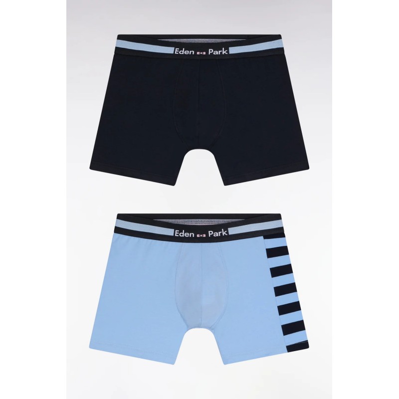 Ce lot de deux boxers Eden Park allie confort et style sport-chic. Confectionnés en coton stretch, ils offrent une tenue souple et un maintien optimal. L’un est uni, l’autre présente des rayures graphiques sur le côté pour une touche élégante. La taille élastiquée siglée complète ces essentiels du vestiaire masculin.