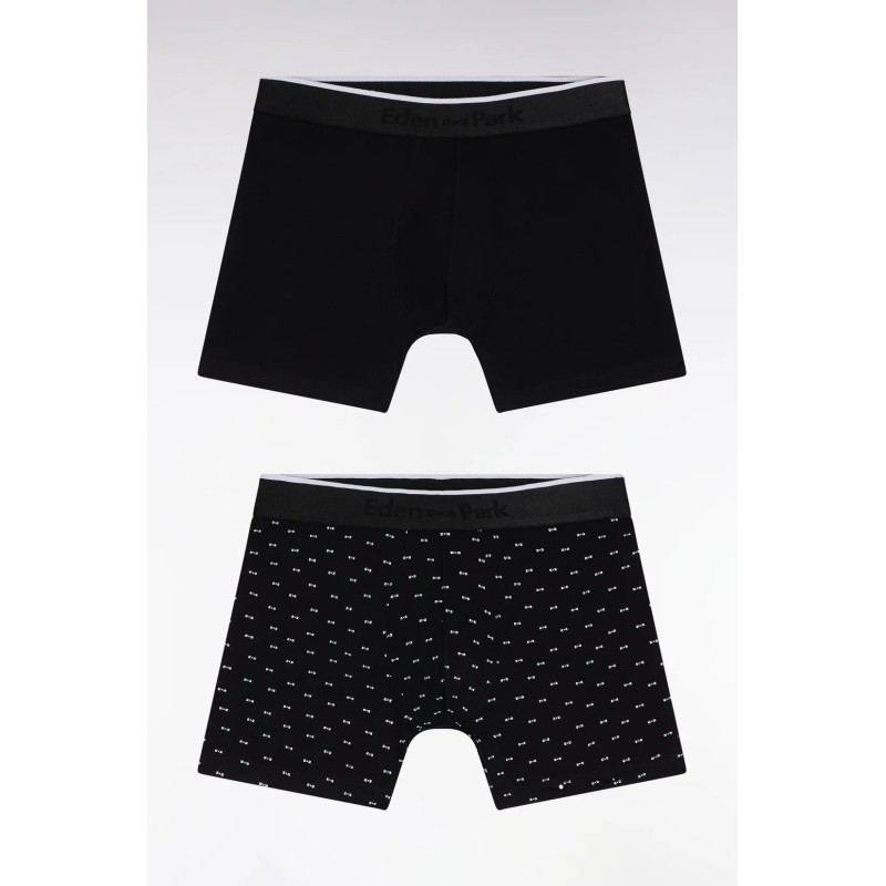 Associez confort et style avec ce lot de deux boxers Eden Park en jersey de coton stretch. Le premier, uni et intemporel, s’accorde à tous vos looks ; le second se distingue par un micro‑motif nœud papillon en all‑over, signature sport‑chic de la Maison. Ajustés et souples, ils offrent un maintien fiable au quotidien, sublimé par une taille élastiquée siglée.