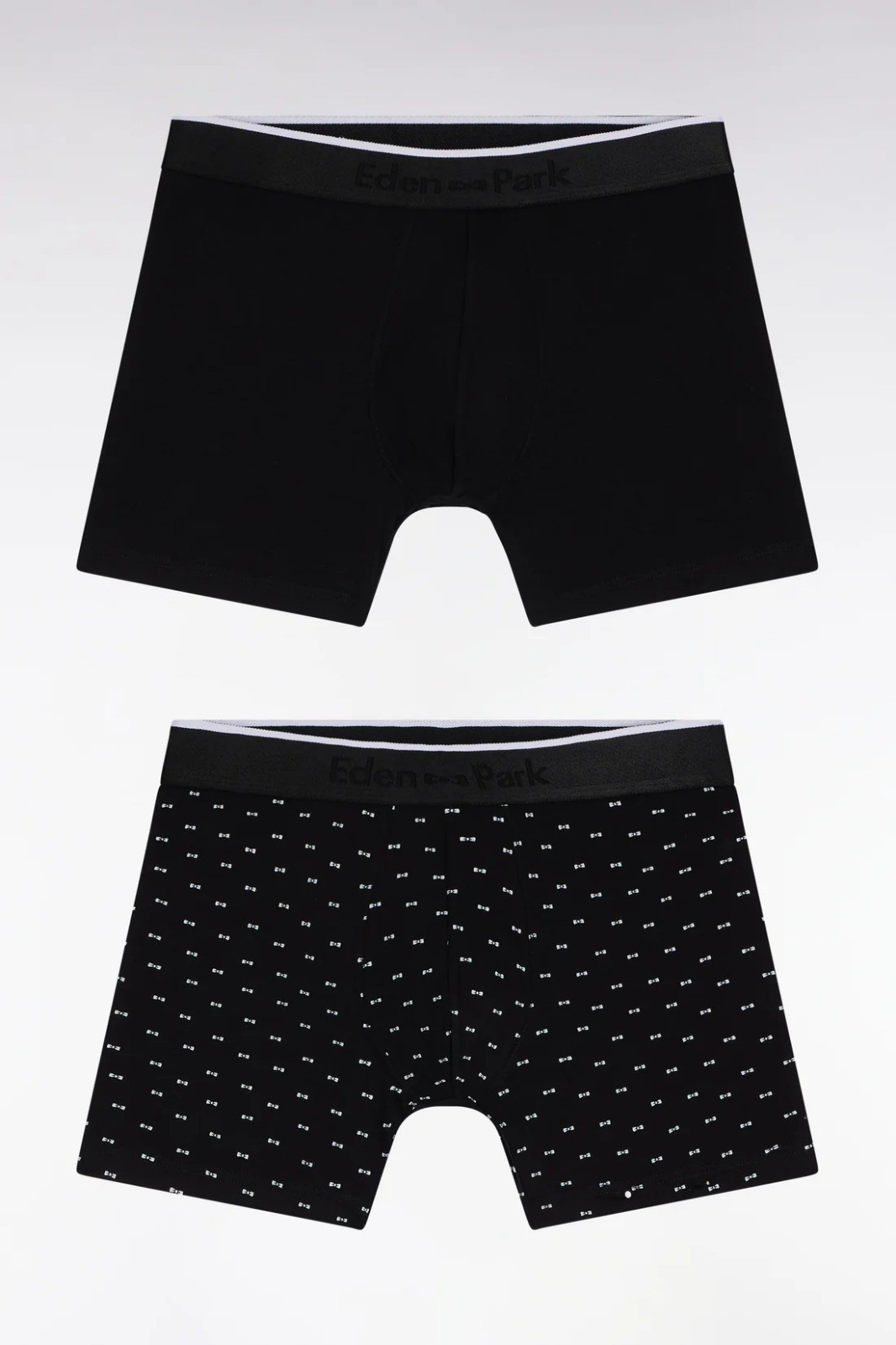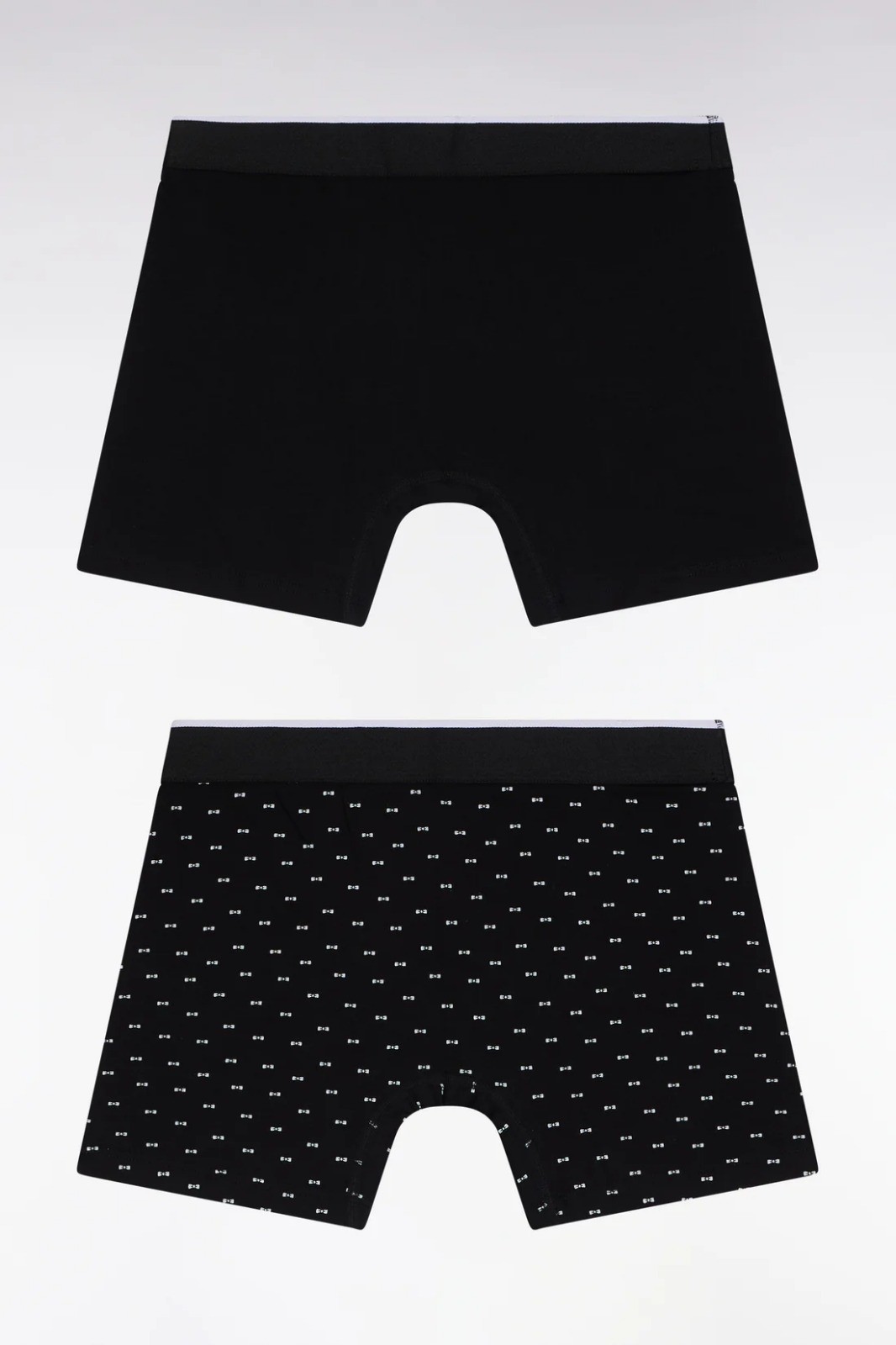 - Lot composé d’un boxer uni + un boxer à micro‑motifs nœud papillon