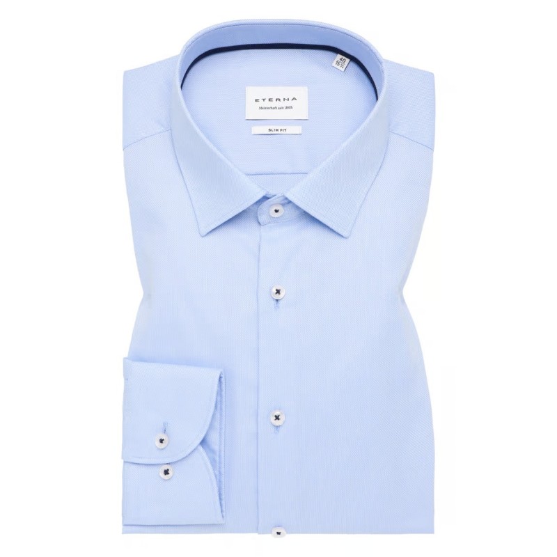Affichez une allure impeccable avec cette chemise ETERNA Slim Fit, idéale pour le bureau comme pour les moments décontractés. Confectionnée en tissu natté 100 % coton, elle est infroissable et respirante pour un confort optimal. Sa coupe près du corps et son col Kent classique apportent une touche moderne et élégante, tandis que son ourlet arrondi permet de la porter avec un pantalon ou un jean. Un essentiel intemporel pour toutes les occasions.