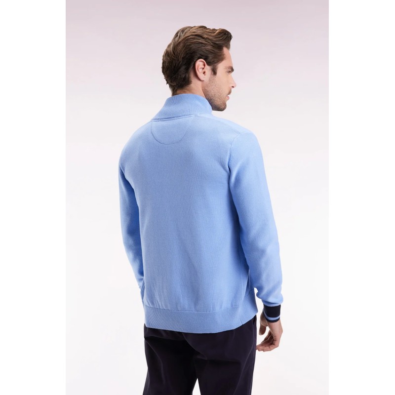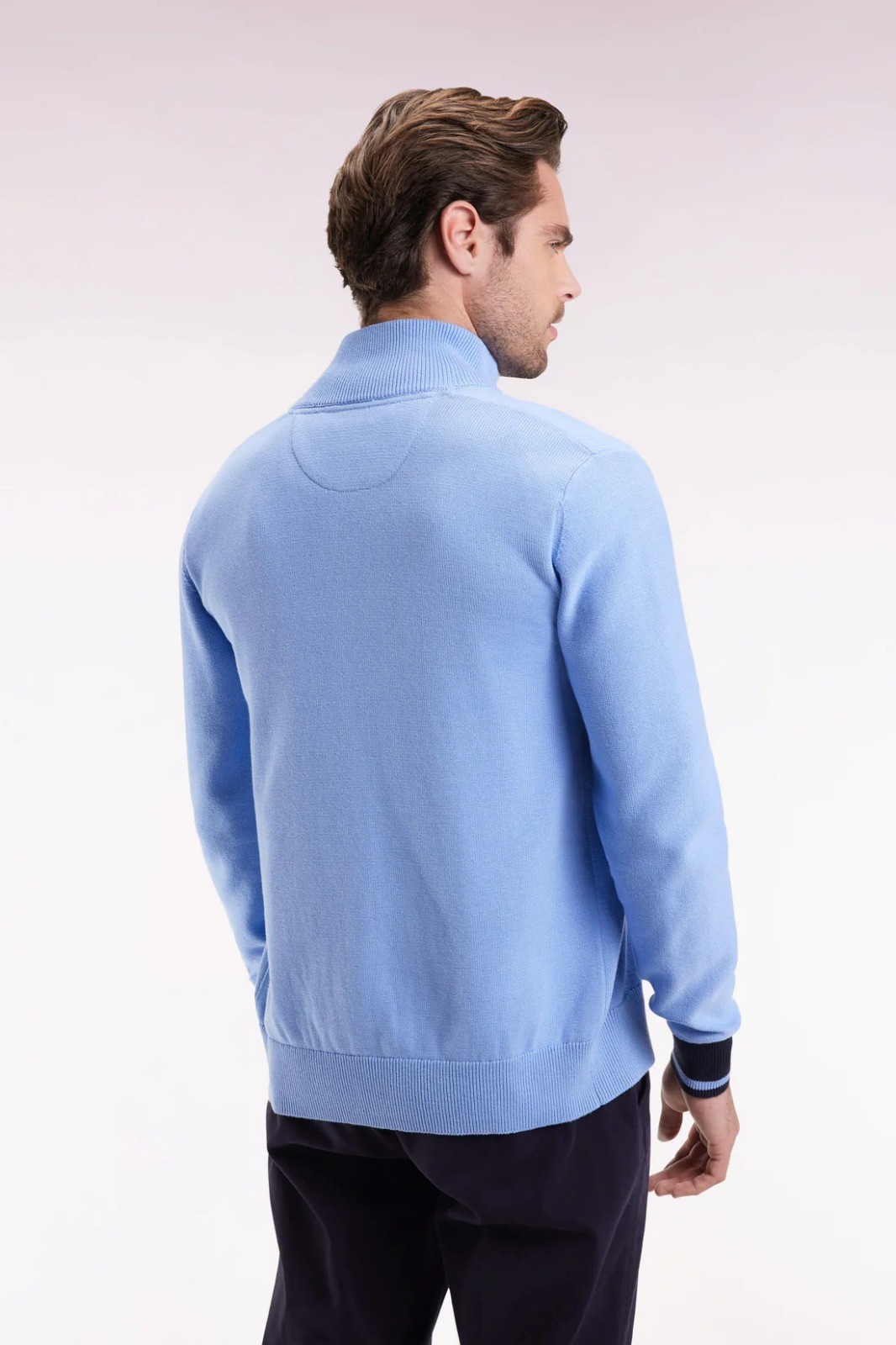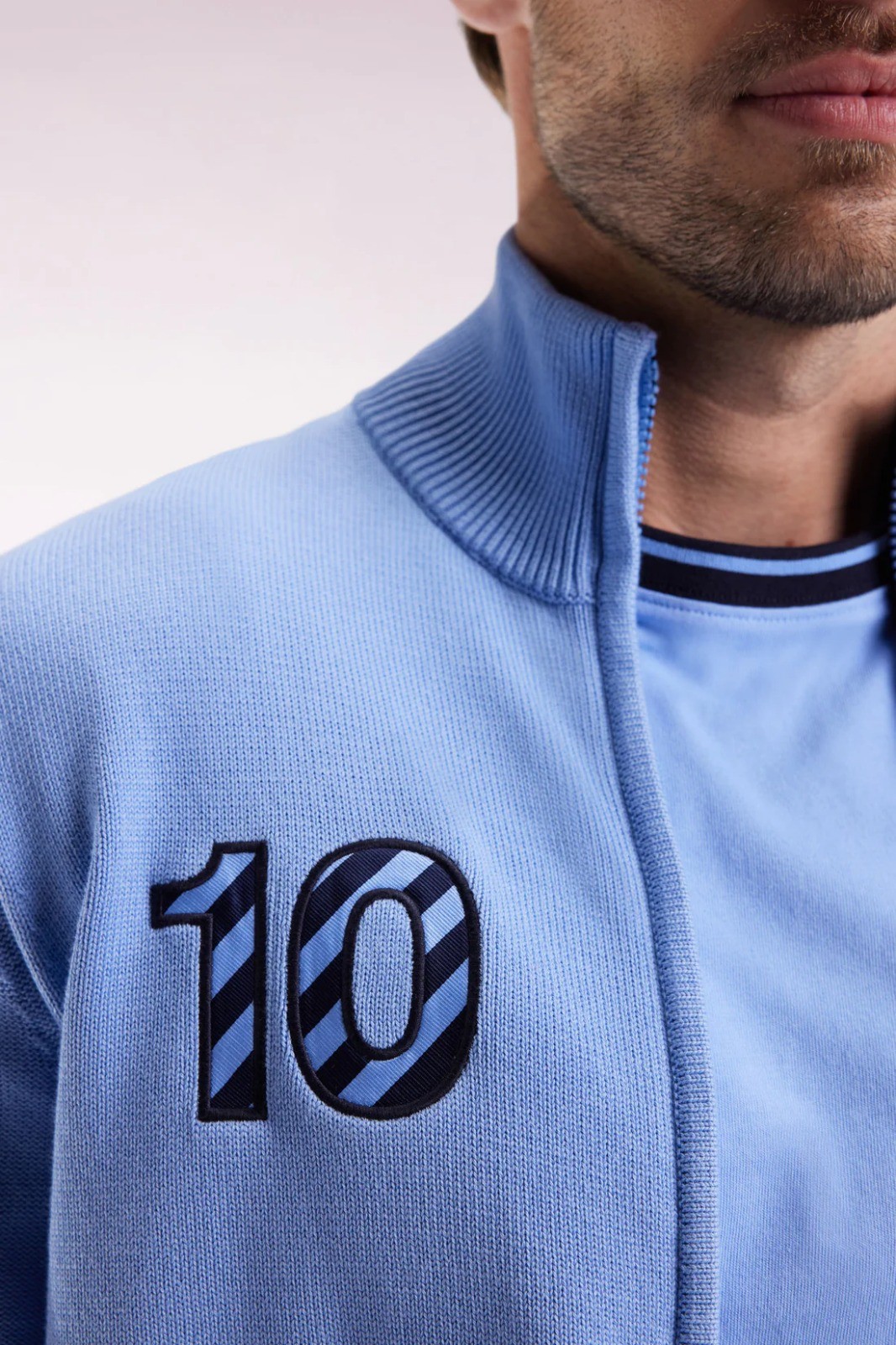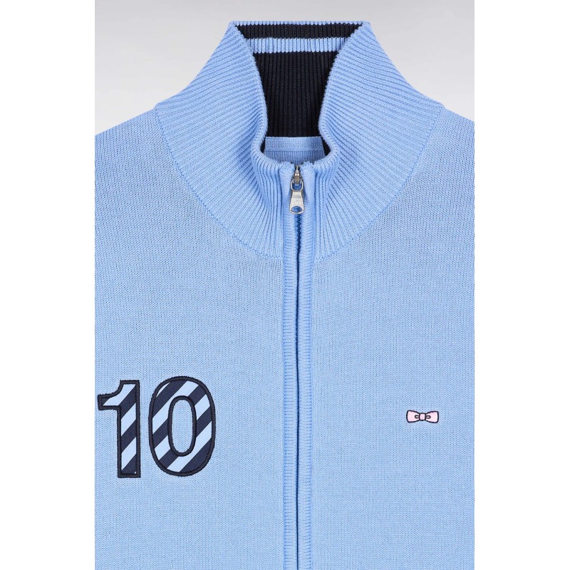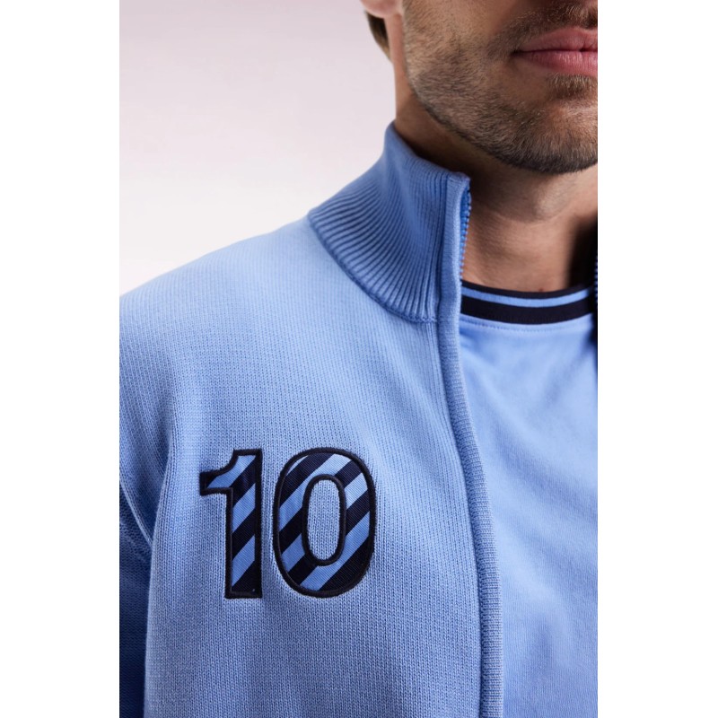 Ce cardigan Eden Park en coton zippé incarne l’élégance sport-chic grâce à ses jeux de textures entre point jersey et jersey envers. Son col montant, ses finitions bords-côtes et son liseré contrasté apportent confort et style. La broderie chiffre 10, rehaussée d’un tissu cravate, ainsi que l’emblème nœud papillon signent cette pièce unique. Idéal pour un look moderne et raffiné au quotidien.