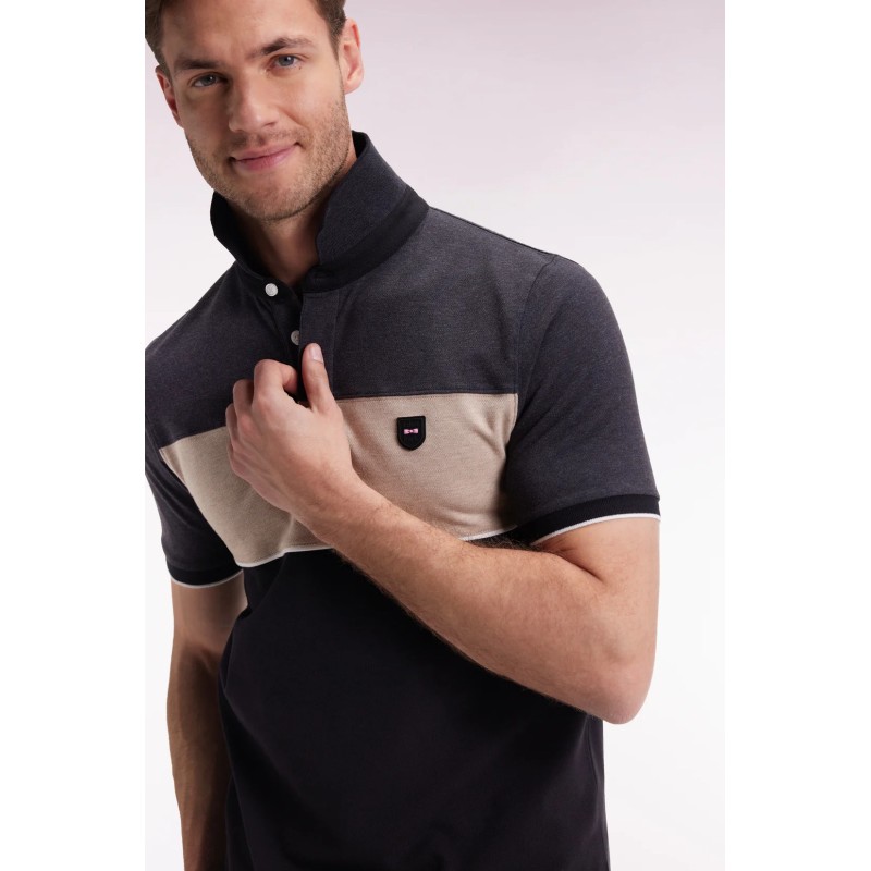 Ce polo Eden Park en piqué de coton stretch allie confort et élégance graphique. Ses découpes tricolores avec passepoils plats sculptent la silhouette, tandis que les rayures fines sous le col et sur les manches ajoutent une touche dynamique. Le col contrasté et les finitions en bords-côtes renforcent son style sport-chic. Sa coupe Slim ajustée assure un tombé impeccable pour un look moderne et raffiné.
