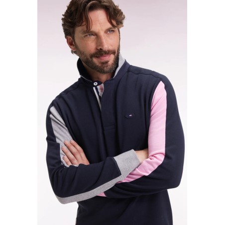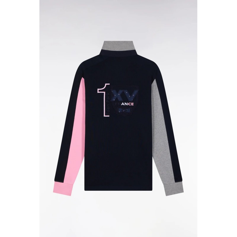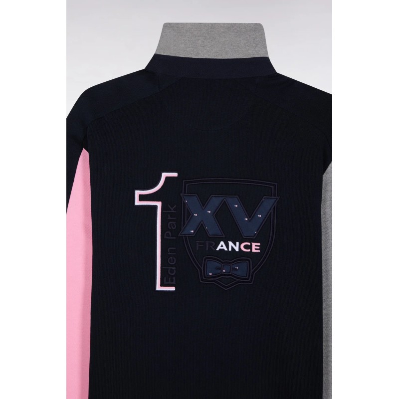 Affichez votre passion pour le rugby avec ce maillot Eden Park à manches longues en jersey de coton épais. Inspiré par l’esprit sport-chic, il se distingue par son large blason XV de France brodé au dos, ses écussons brodés et sa patte de boutonnage tricolore. Le col contrasté en twill avec dessous tricoté et les finitions bords-côtes assurent confort et élégance. Une pièce forte pour soutenir le rugby français avec style.