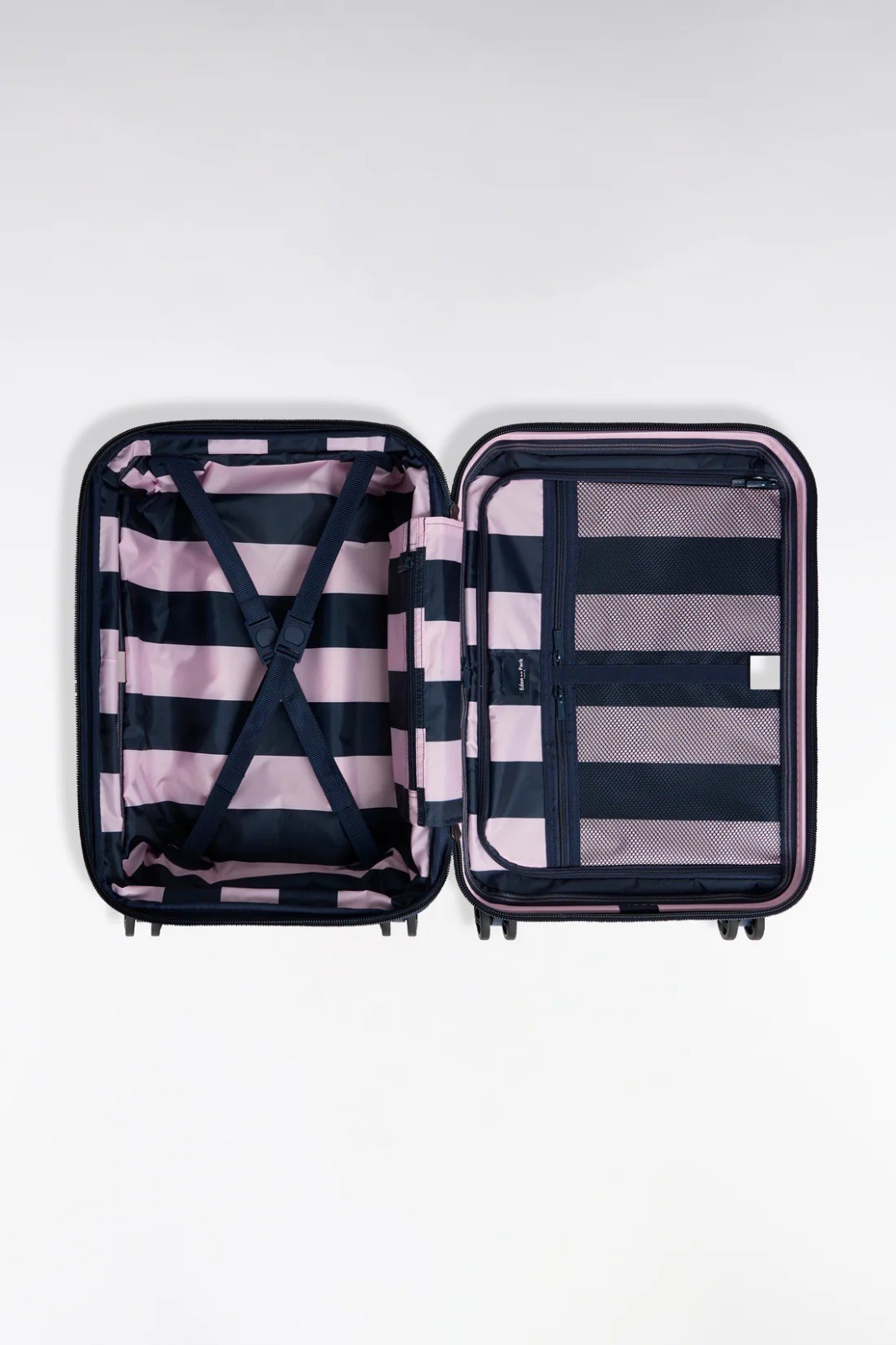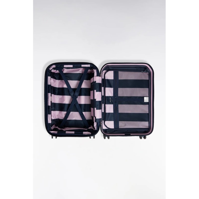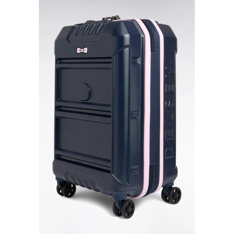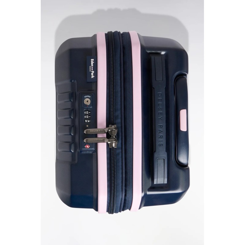 Voyagez avec élégance grâce à la valise cabine Tournée French Flair, fruit de la collaboration entre Eden Park et Delsey Paris. Conçue en polycarbonate résistant, elle offre un format compact extensible pour un rangement optimisé. Son design marine rehaussé de touches rose poudré et du nœud papillon emblématique incarne le style sport-chic. À l’intérieur, une doublure recyclée amovible aux rayures rugby, sangles et filets assurent organisation et praticité. Dotée de 4 roues multidirectionnelles silencieuses, d’une fermeture sécurisée SECURITECH® 2 et d’une serrure TSA, elle garantit confort et sécurité pour tous vos déplacements.