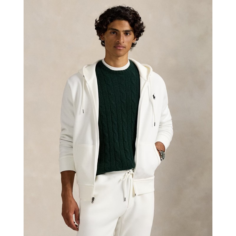 Ce sweat à capuche Ralph Lauren en maille double allie confort et style. Confectionné dans un coton mélangé doux, il présente une fermeture zippée intégrale et une capuche ajustable. Idéal pour un look casual chic, il se porte aussi bien avec un jean qu’un pantalon de jogging.
