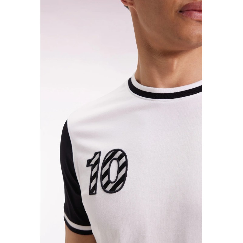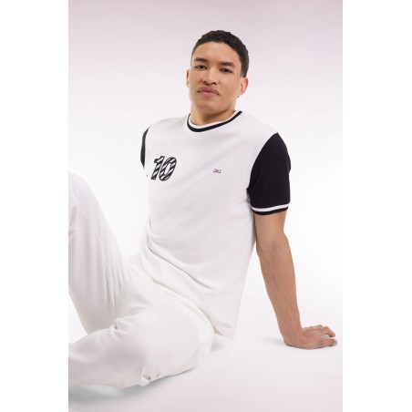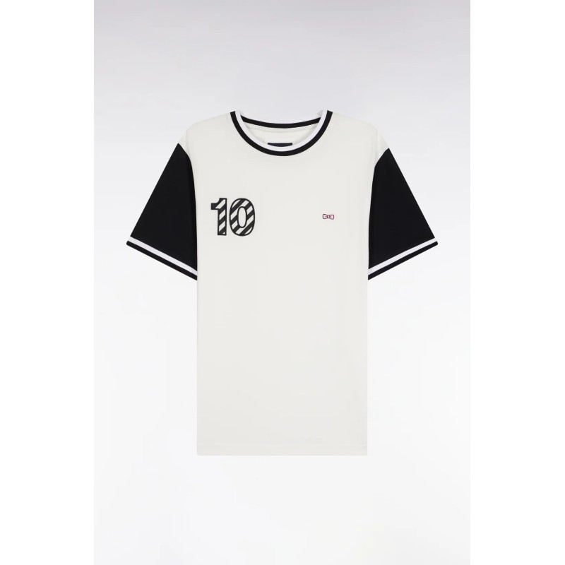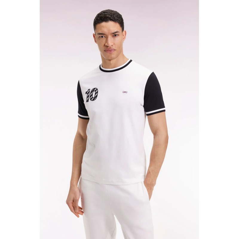 Ce T-shirt Eden Park en jersey de coton doux incarne le style sport-chic avec ses manches contrastées et ses bords-côtes rayés. Sa broderie « 10 » rehaussée de tissu cravate apporte une touche élégante et originale. Léger et confortable, il se porte aussi bien avec un jean qu’un chino pour un look casual raffiné.