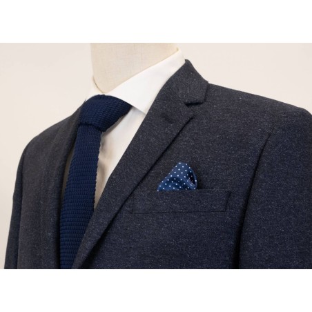 Adoptez l'élégance avec la veste bleu chiné ELOI de MONSIEUR HECTOR, en laine et soie, dotée de coudières et d'une poche ticket pour un style ajusté et raffiné.